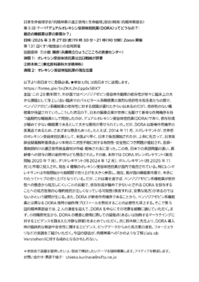 主旨:この20数年間で、わが国ではベンゾジアゼピン受容体作動薬の依存性が徐々に臨床上の大きな課題として浮上し(古い臨床でのバルビタール系睡眠薬の激烈な依存性を知る者たちの間で、ベンゾジアゼピン系睡眠薬の依存性に対する認識が遅れたきらいはあるのだが)、依存性のない睡眠薬が待望されていた。こうした状況の下、日本の製薬企業が世界に先駆けて新奇な作用機序を持つ画期的な睡眠薬として開発したのが、デュアルオレキシン受容体拮抗薬(DORA)であり、依存形成が極めて少ない睡眠薬であるとして大きな期待が寄せられていた。だが、DORAは新奇作用機序の医薬品であるため、さまざまな懸念もあった。たとえば、2014年11月、スボレキサントが、世界初のオレキシン受容体拮抗薬として、米国より早く、日本で販売開始されたが、上市に先立って、日本医師会疑義解釈委員会より本剤の二次性不眠に対する有効性・安全性につき問題が提起され、医師・薬剤師向けの適正使用推進資材が作成・配布されるに至った。この他、日米での承認用量の違い、高齢者への投与の際の副作用なども懸念された。その後、本邦ではDORAがレンボレキサント(販売開始2020年7月)、ダリドレキサント(同2024年12月)、ボルノレキサント(同2025年11月)と市場に投入され、現在4種類のオレキシン受容体拮抗薬が国内で販売されている。特にレンボレキサントは市販開始から短期間で売り上げを大きく伸長し、現在、我が国の睡眠薬市場で、年余にわたってトップの売り上げとなっている。だが、これは裏を返せば、ベンゾジアゼピン系睡眠薬が依存性への懸念から処方しにくいことの反動で、依存形成が極めて少ないとされるDORAを投与することへの処方医側の心理的抵抗が乏しくなっている可能性(換言すれば、安易な処方)があるのではないかという疑問が生じる。また、DORAが新奇作用機序であることから、ベンゾジアゼピン系睡眠薬とは異なるDORA独特の副作用プロフィールを熟知することの必要性も浮上する。そこで第5回向精神薬部会では、2人の演者を迎えて、DORAを中心にその功罪を縦横に論じていただく。まず、小田陽彦先生から、DORAの概要と使用に際しての留意点(あるいは加熱するマーケテイングに対するエビデンスを踏まえた冷静な評価)をまとめていただく。次に鈴木映二先生より、DORA導入時の臨床的な教訓や安全性に関するエビデンス、ビッグデータからみた処方数の変化、フォーミュラリなどの実践をご紹介いただく。今回の部会が、向精神薬への「かのような了解」(als ob Verstehen)に対する戒めとなるかもしれない。