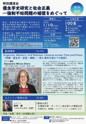 講演会「優生学史研究と社会正義:強制不妊問題の補償をめぐって」