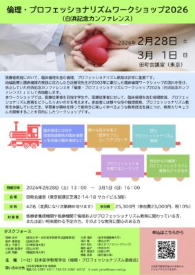 日本医学教育学会:倫理・プロフェッショナリズム委員会主催「倫理・プロフェッショナリズムワークショップ2026(白浜記念カンファレンス)」