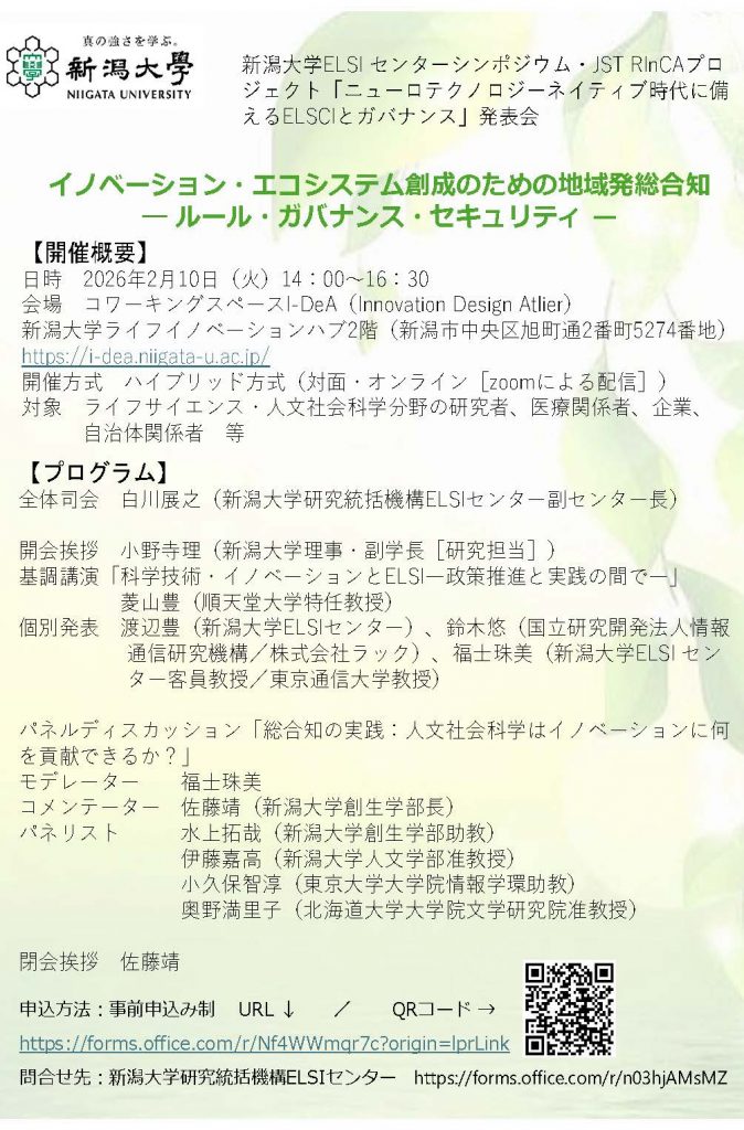 新潟大学ELSIセンターシンポジウム「イノベーション・エコシステム創成のための地域発総合知」