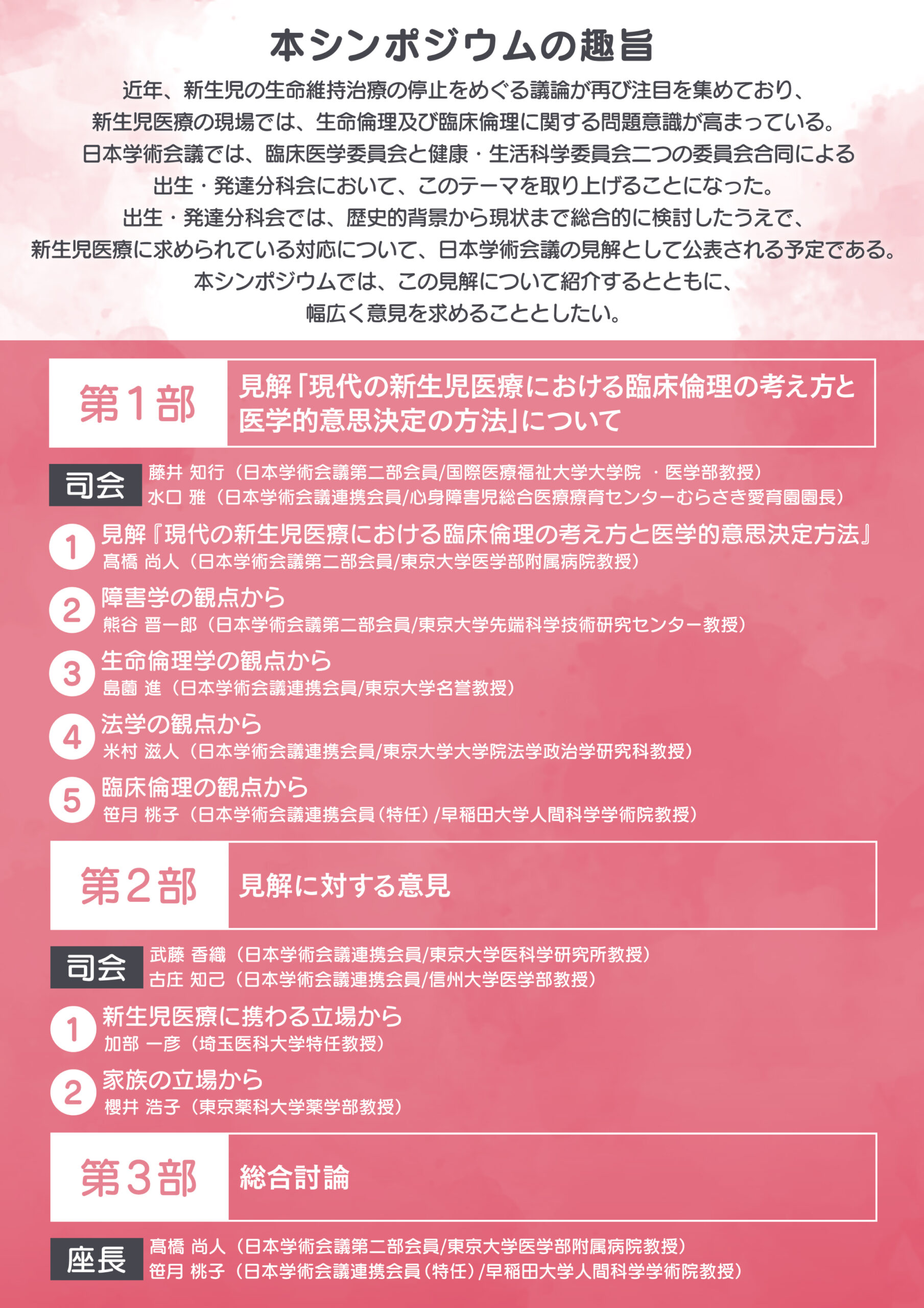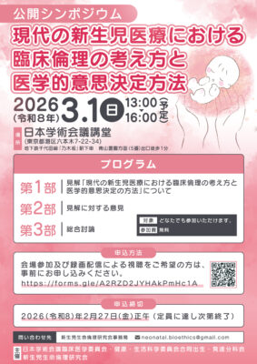 公開シンポジウム「現代の新生児医療における臨床倫理の考え方と医学的意思決定方法」